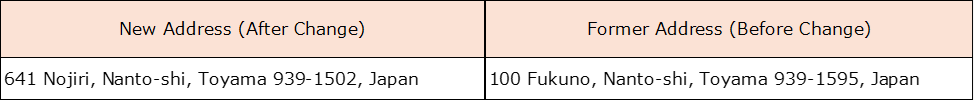 Our head office address had previously been designated as the Toyama Plant. However, as our head office
