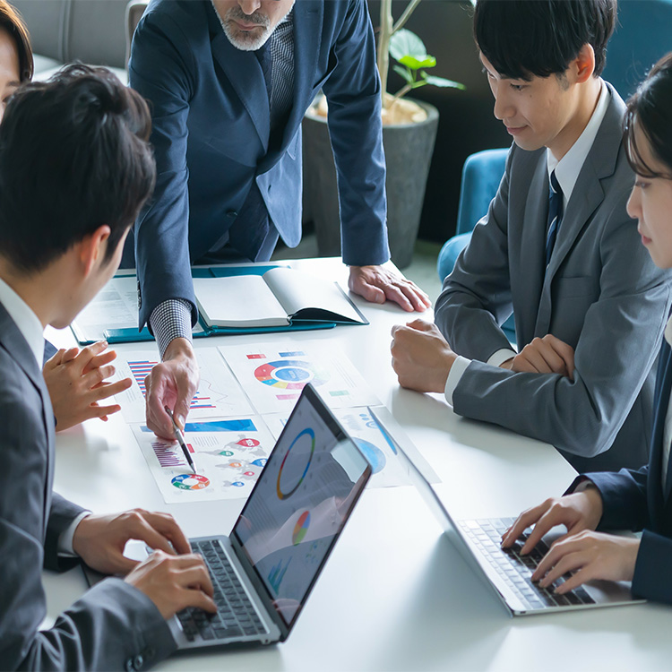 例えば、普段から業務で使用するシステムや資料作りの方法、実際のお客様とのやりとりで必要なコミュニケーションスキルやノウハウを先輩社員が丁寧にレクチャーして、伝授させていただきます。