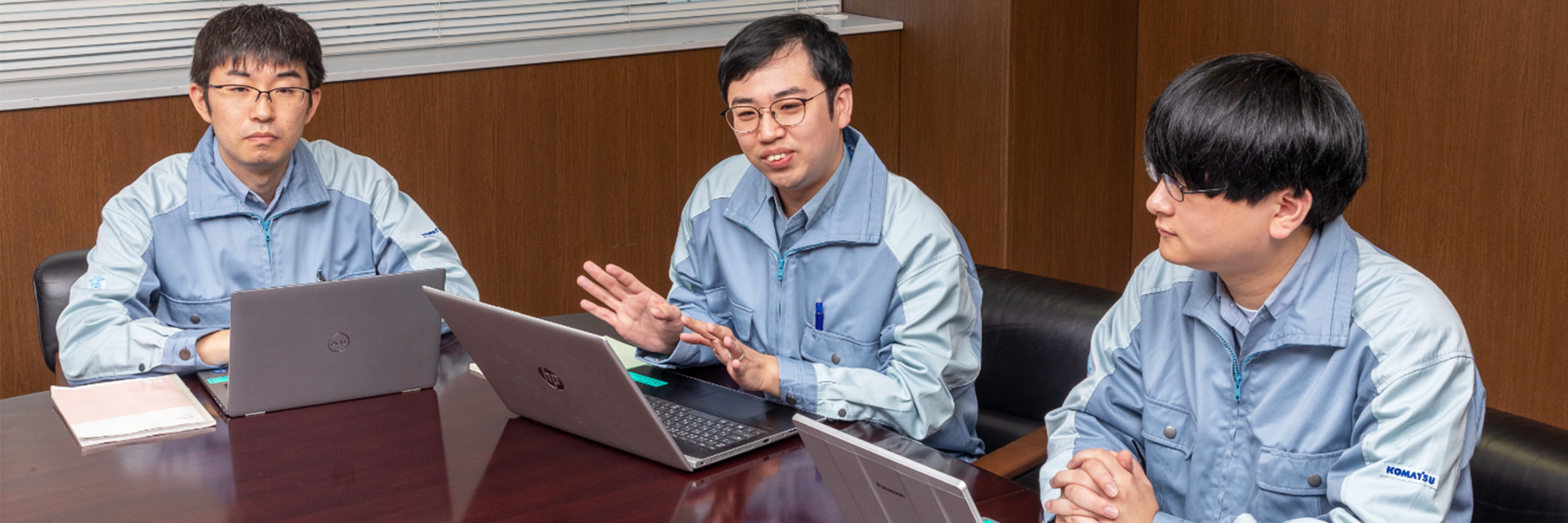 コマツNTCは福利厚生や研修制度が充実しており、働きやすい会社だと思います。疑問に思うことや質問があれば、私たち先輩社員になんでも聞いてください。
